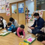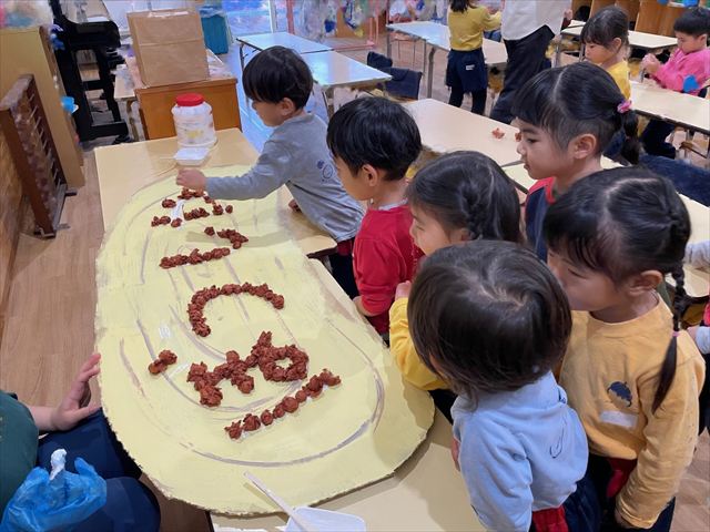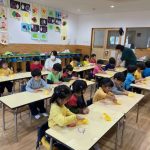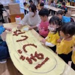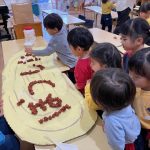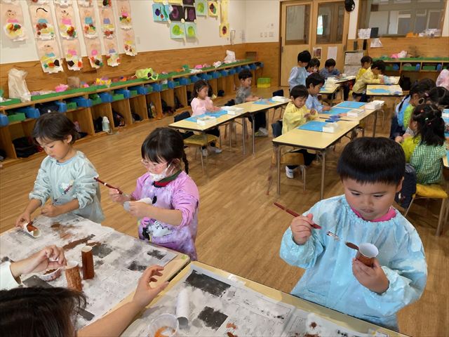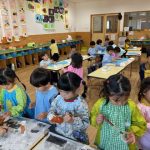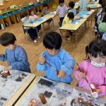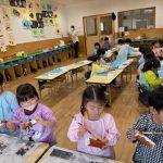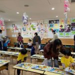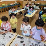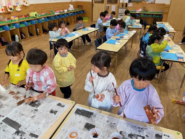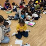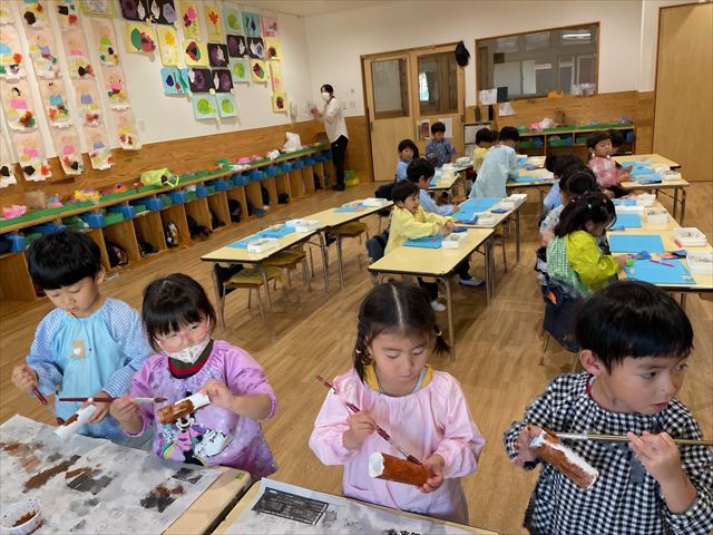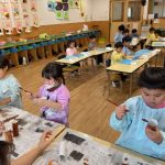 作品展前には仕上げで、どんぐりの名札や看板作りをしました。みんな真剣な顔で色塗りをしたり、笑顔で楽しむ姿が見られました。