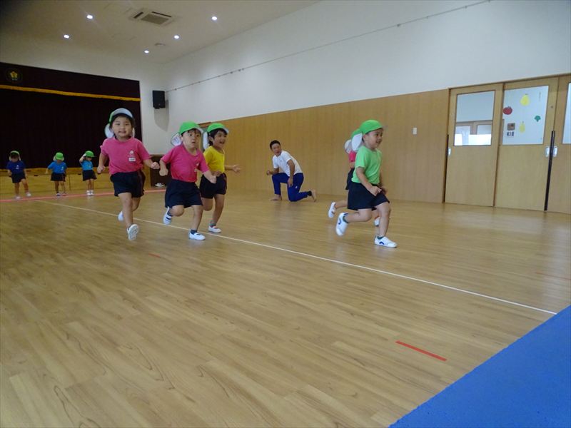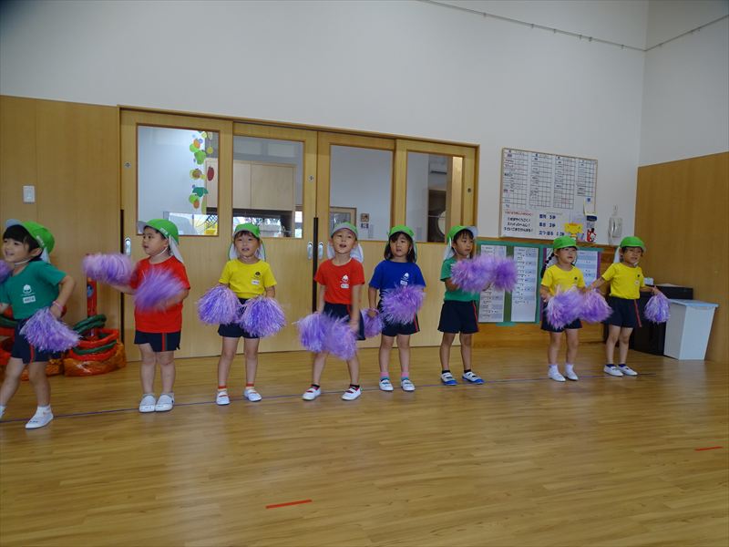 菊2組の子ども達は、「あとちょっとで運動会だね!」、 「じいじとばあばも来るの!」と、運動会を楽しみにしているようです。 中には、「ドキドキする!」とちょっぴり緊張しているお友達もいます。 かけっこやお遊戯の練習を頑張る子ども達。 運動会当日、どのような姿を見せてくれるのか、とても楽しみです。 沢山の応援をよろしくお願いします。 当日、はなもも体育館でお待ちしております。