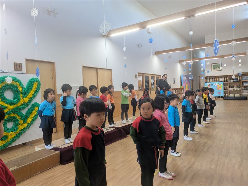 まだまだ寒い日が続いていますが、今日も全員出席!! 元気いっぱいの菫2組の子ども達です。