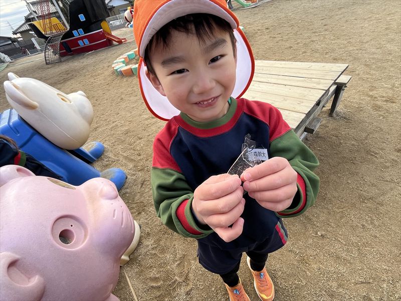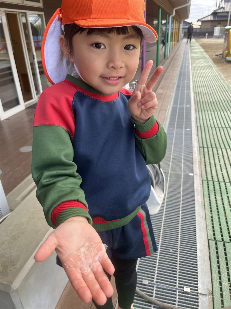 外遊びをしていると、氷を見つけて嬉しそうでした!