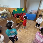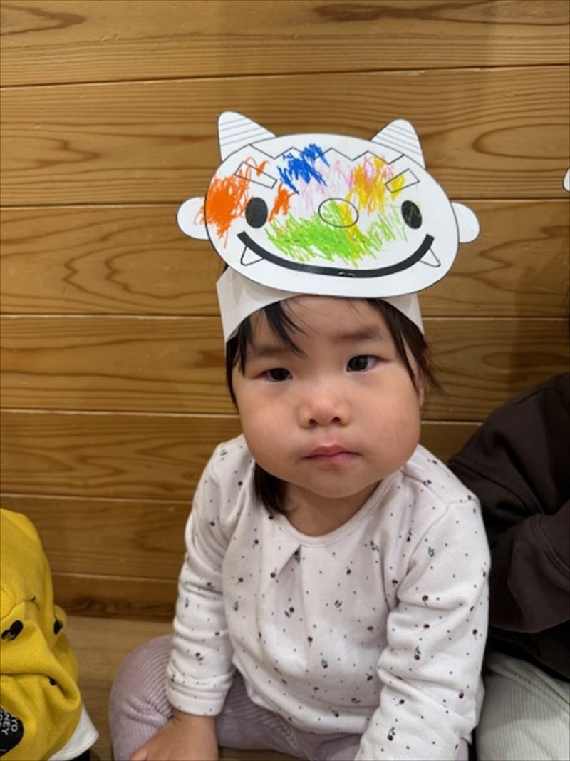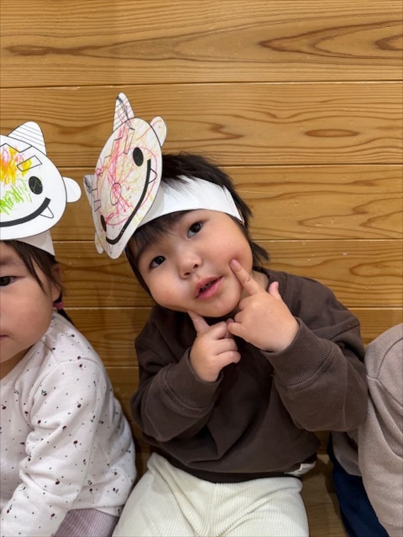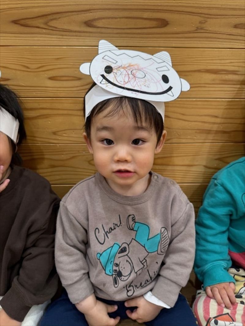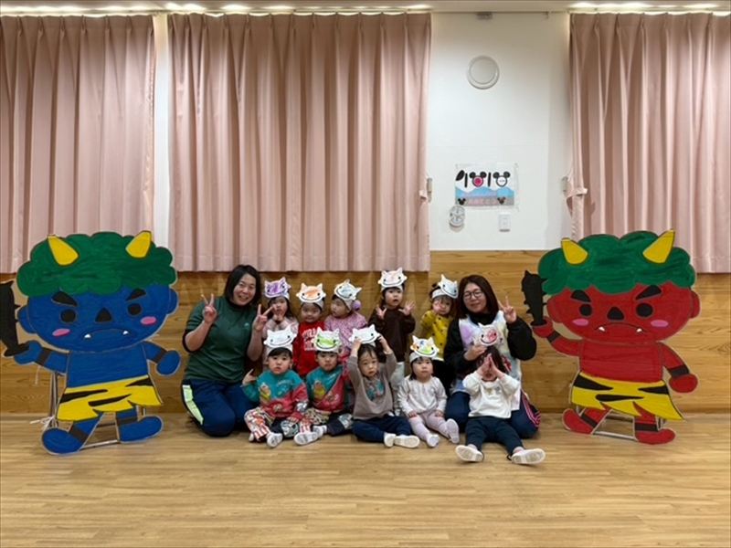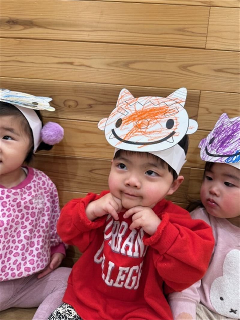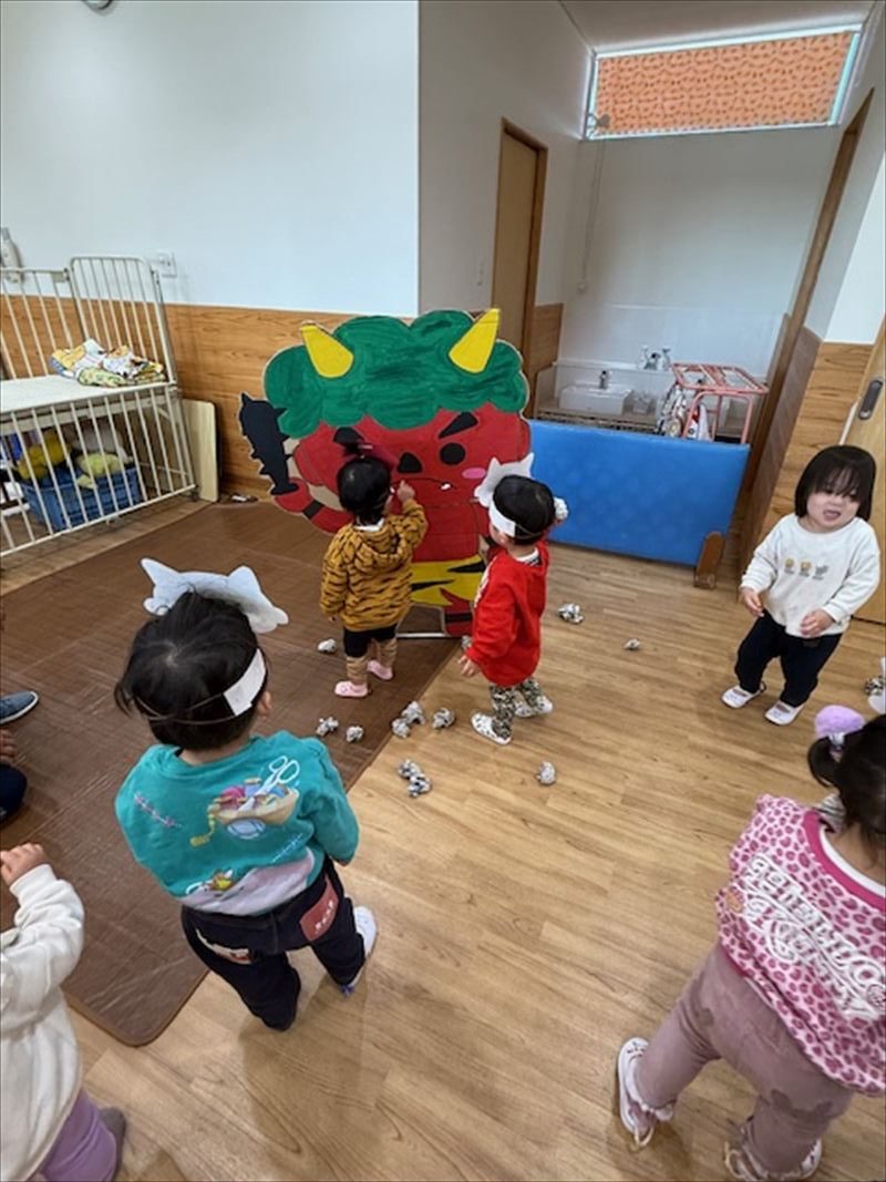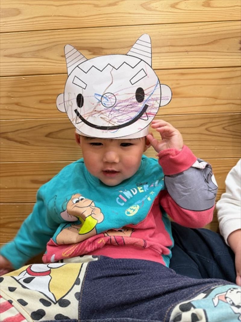 2月に入り、節分を楽しみました。鬼のパネルを怖がる