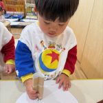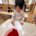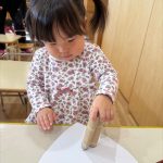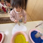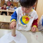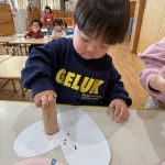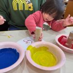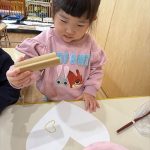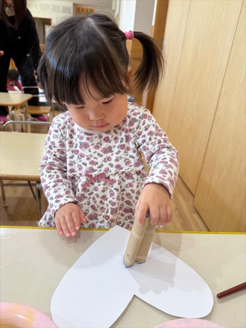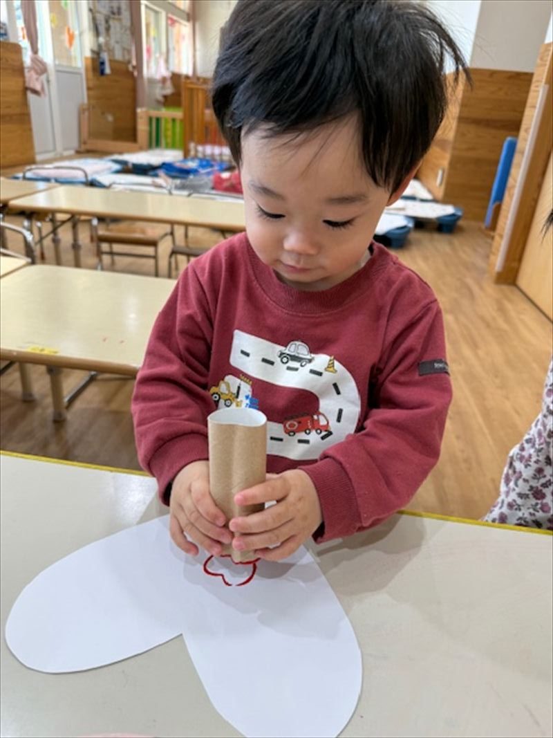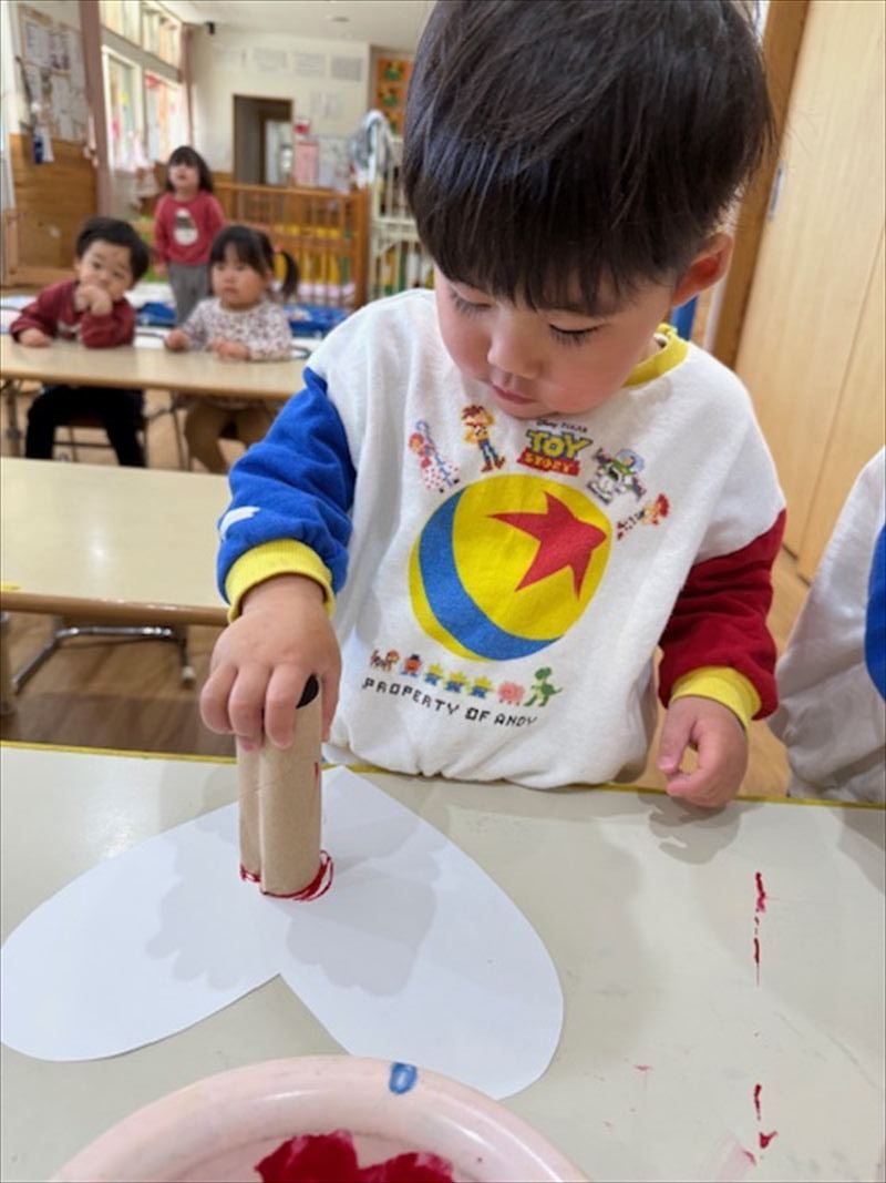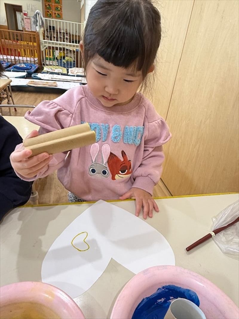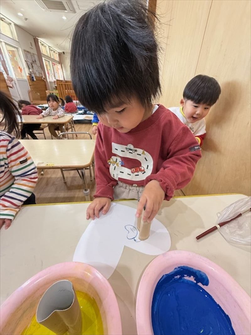 他にも2月の製作で絵の具とトイレットペーパーの芯を