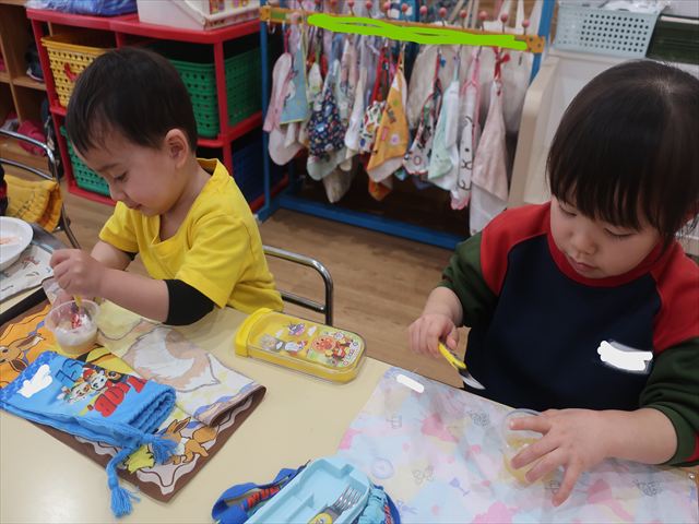 3学期がスタートし、あっという間に1ヵ月が経とうとしています。園生活にもだいぶ慣れ、冬休み明けも笑顔で登園してきてくれた2組さん。