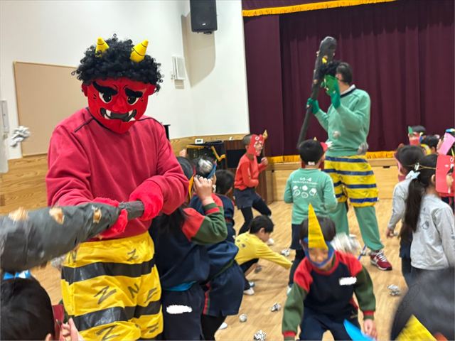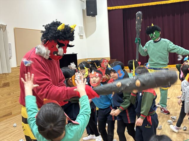 今年も手作りの鬼のお面を作って「豆まき」を行ないました。