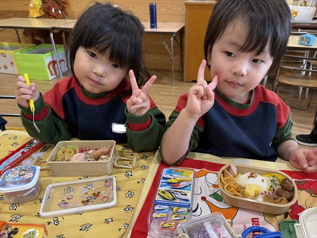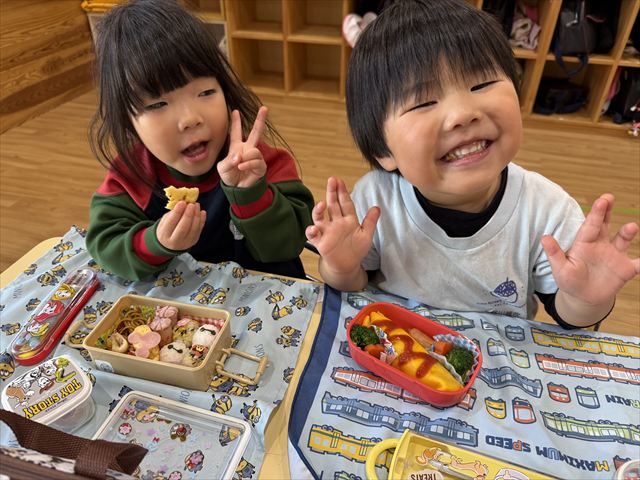 お弁当を見せ合ったりと嬉しそうに食べていました。