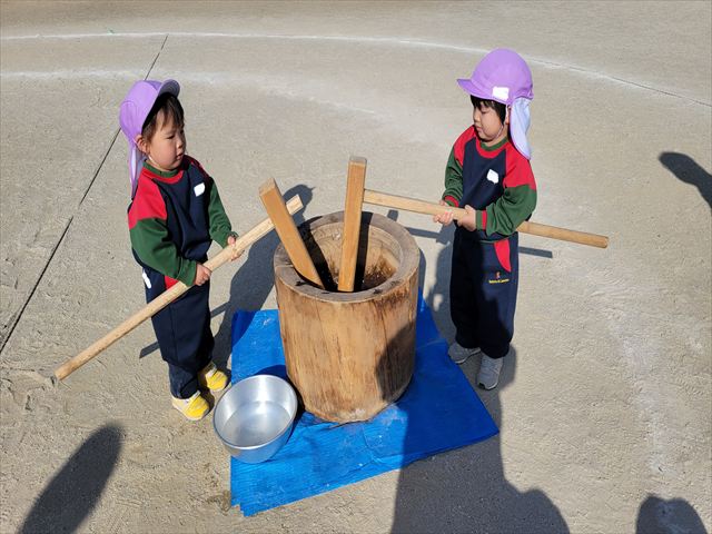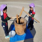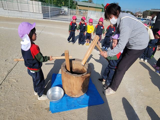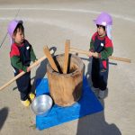 もちつき!実際に杵を持ち、もちつきをしました。