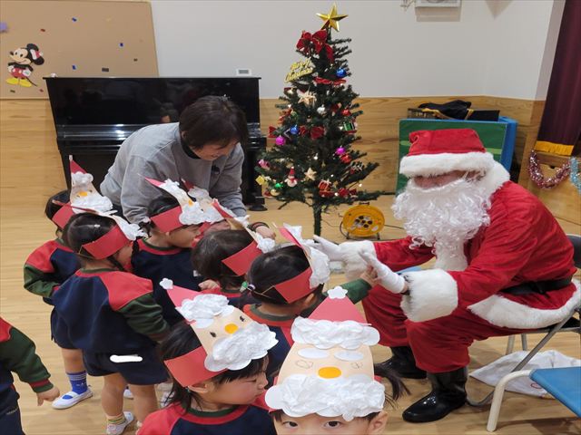 クリスマス会ではサンタさんに質問をしたり、お部屋でプレゼント探しをしました。