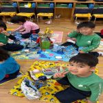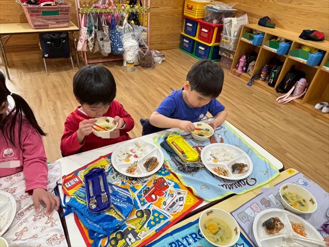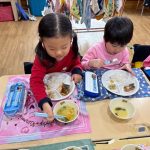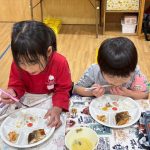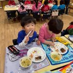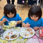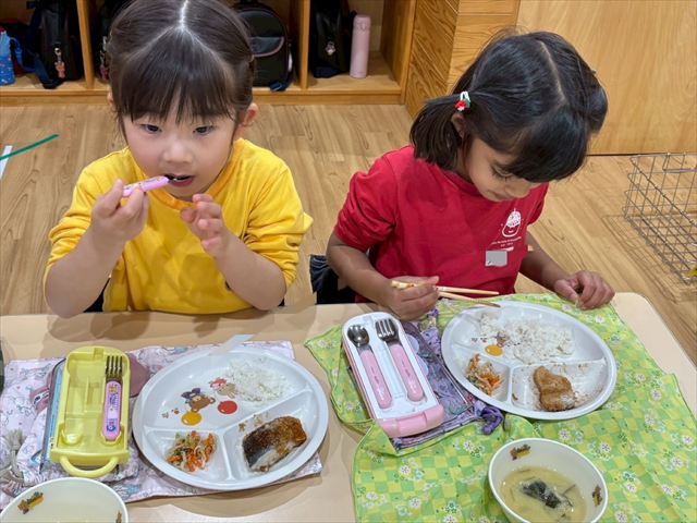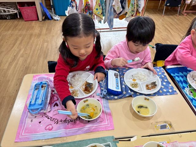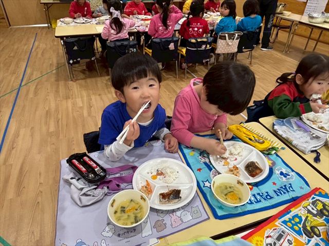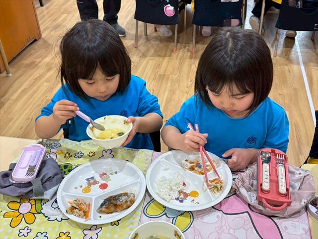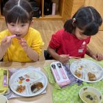 給食大好き!最近では箸を使って食べる子も増えてきました。