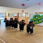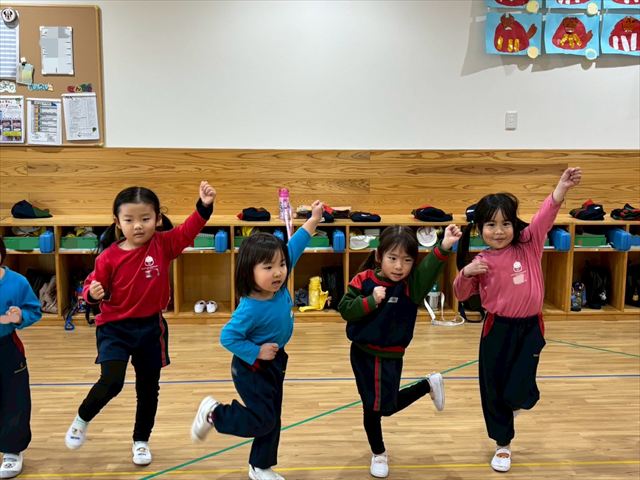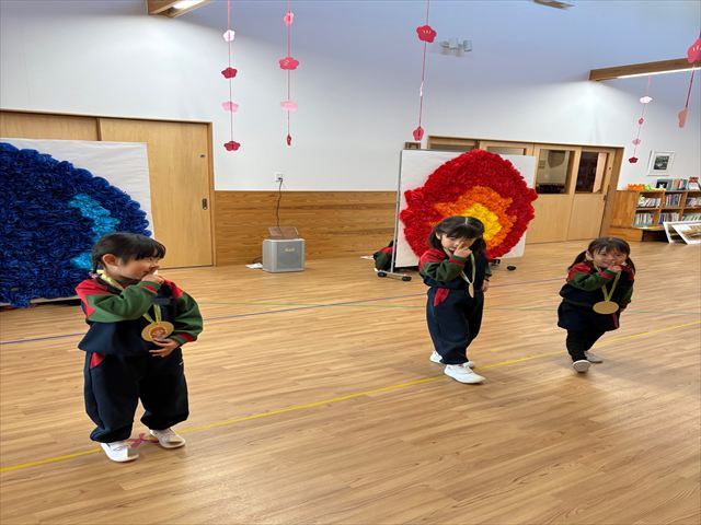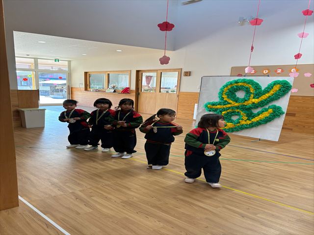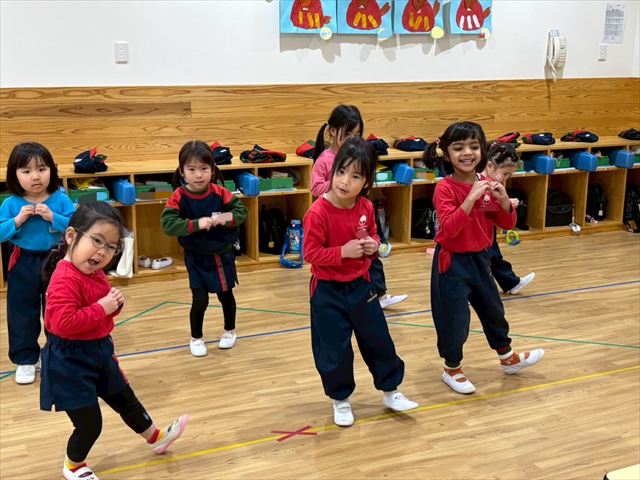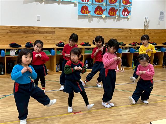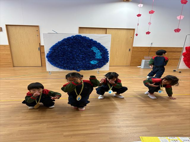 2月の発表会では、たくさんの応援をありがとうございました。発表会に向けて毎日練習をしました。オペレッタでは自分のやりたい役を話し合って決め、曲や振りを気に入ったようで元気いっぱい練習をしていました。遊戯や手話、フィナーレも、とても可愛らしく、キラキラした姿に成長を感じました。