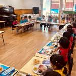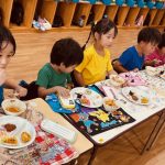 毎月のお弁当の日に1クラスずつバイキング給食(うどん踏み)を