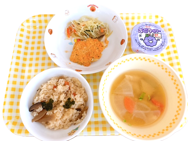 給食からも季節を感じられるように、先月、今月と秋らしい献立を