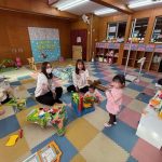 外遊びは砂場で自分の好きな遊びを楽しみました。観劇も「てぶくろ」のお話を興味津々で見ていました。泣く時間も少なくなってきて少しずつ慣れてきて嬉しく思います。また次回お待ちしております。