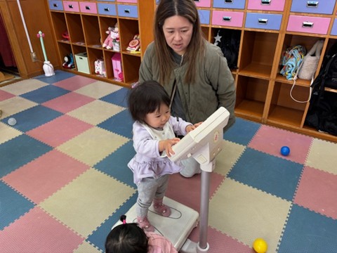 <内容>身長体重を測って記録しましょう。すくすく育っているかな?