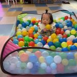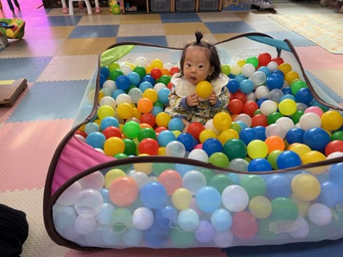 飛行機チームは風が強かった為、室内遊びでサーキットやボールプールで遊びました。足でいろいろな感触を楽しんでいました。