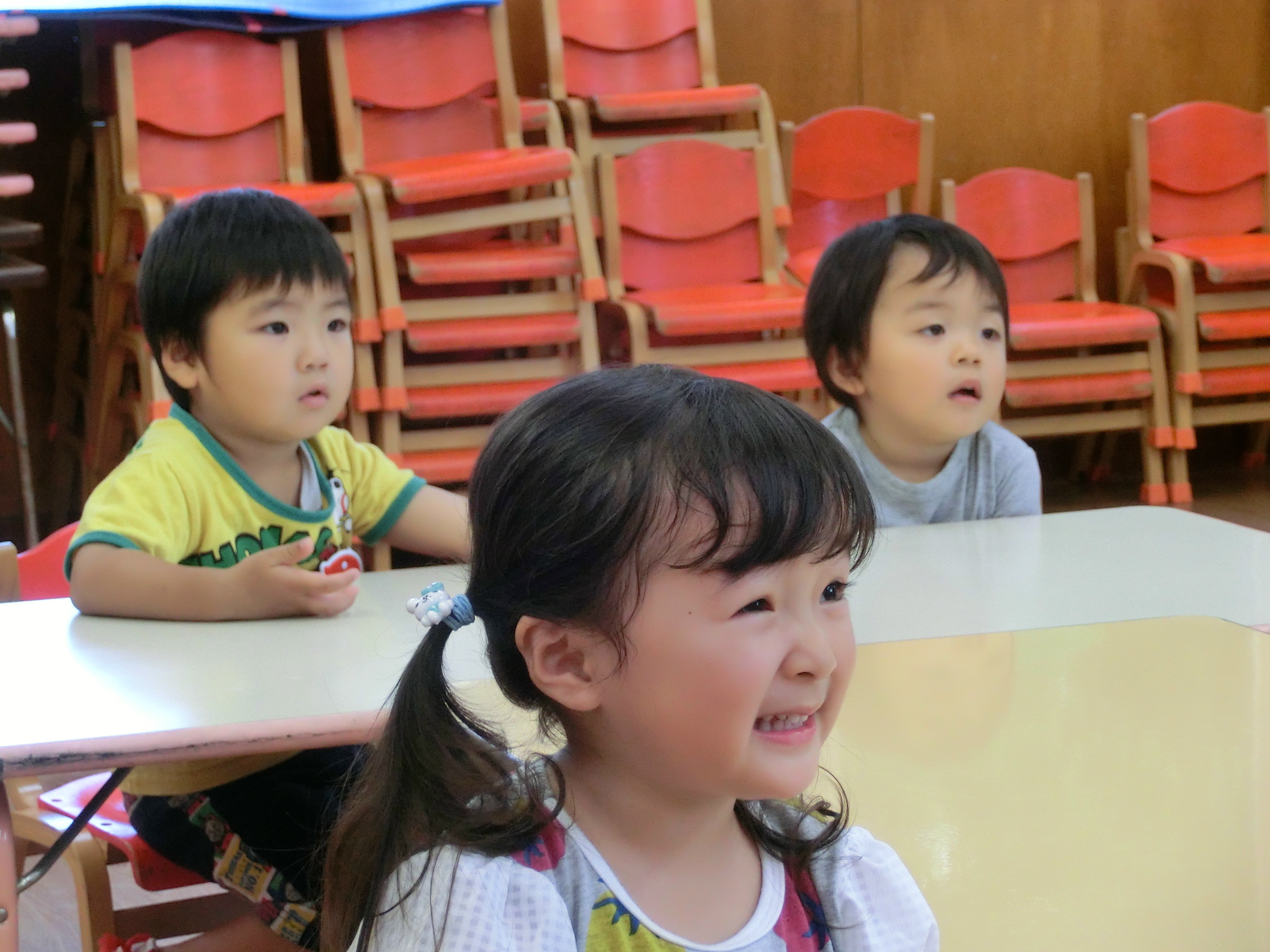 まずはいつもの挨拶から始めます。今日出会うお友だちは、どんなお友だちかな~??話す時間が足りないままに次のお友だちへ…たくさんお友だちが出来るといいですね!