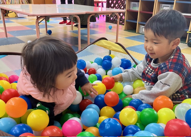 今日はボールプールや輪投げの輪っかが大人気でした!