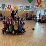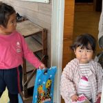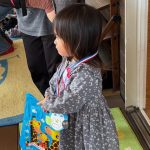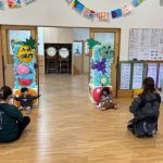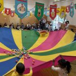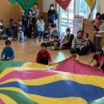 4歳児菫1組さんにパラバルーンの演技を披露してもらいました。運動会の演技の時からさらにパワーアップしていました!