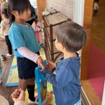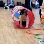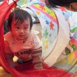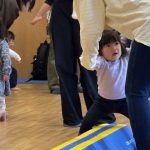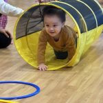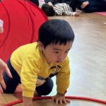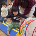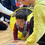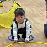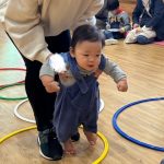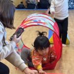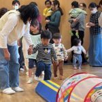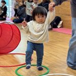 渡ってくぐってジャンプして、探検ごっこです。ママやパパと手をつないで元気にたんけんできたね!