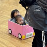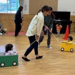 ちびっこカートに乗り込みママさんドライバーが運転!猛スピードの車があったり急ハンドルを切ったりドライブテクニックはいかがだったでしょう?お友だちは嬉しそう💓