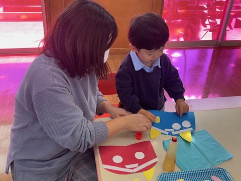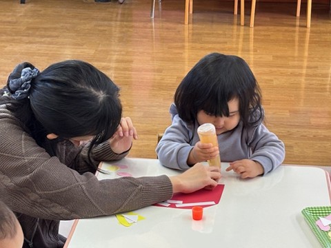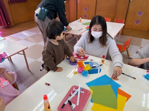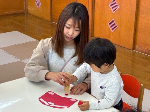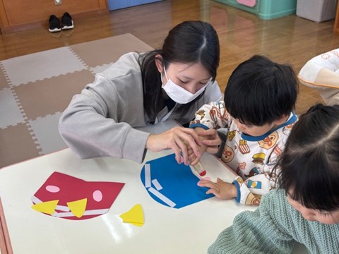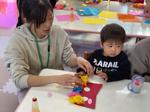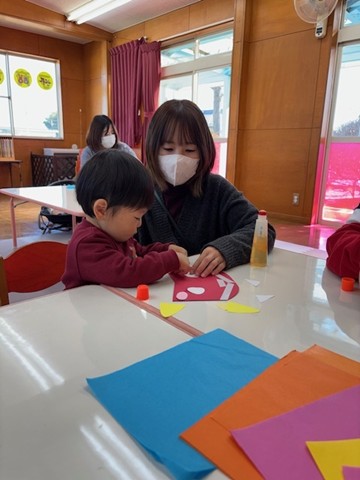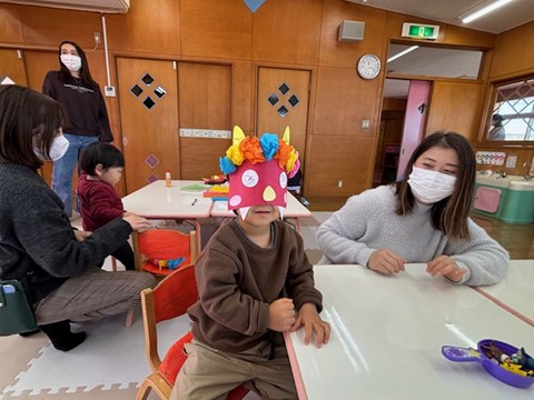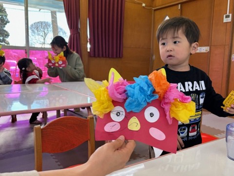 2月2日(月)・3日(火)のサロン「どんぐり」は、節分を楽しもうということで、鬼のお面を製作しました。鬼の顔のパーツを貼ったり、花紙を丸めて髪の毛にしたりと、楽しく作っていました。