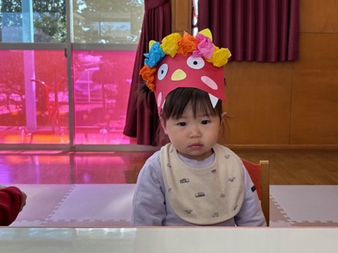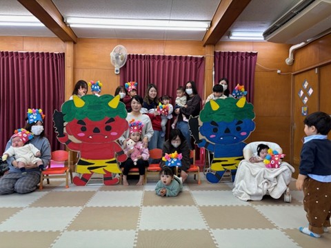 節分の行事楽しめたでしょうか?最後は作ったお面をつけて写真を撮りました!