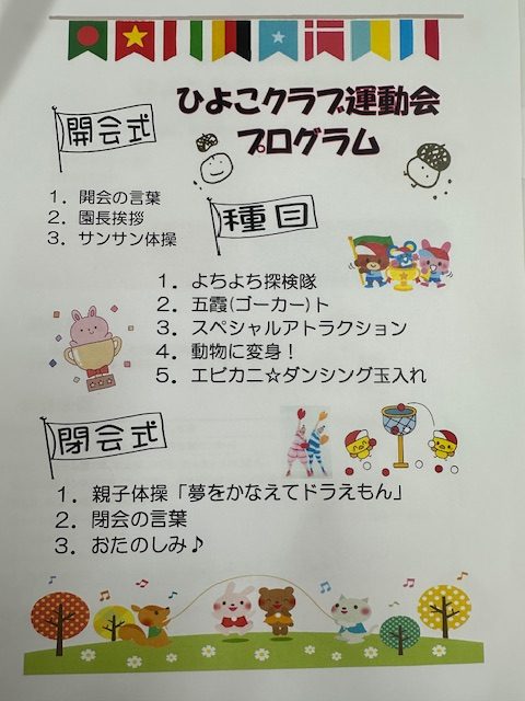 11月10日(月)ひよこクラブ運動会を開催いたしました。たくさんのお友だちが参加しとても賑やかになりました。