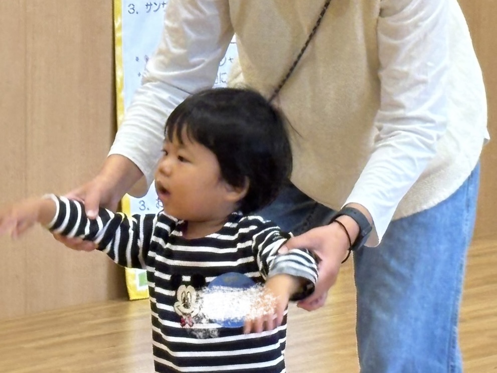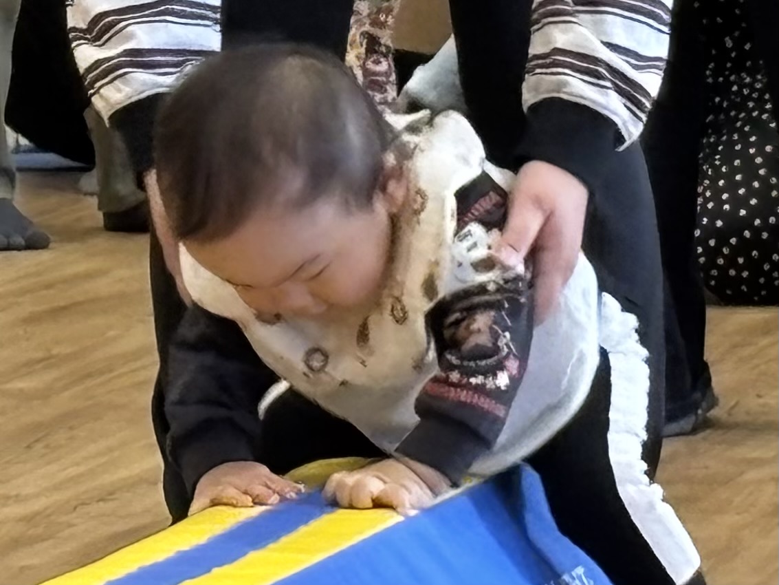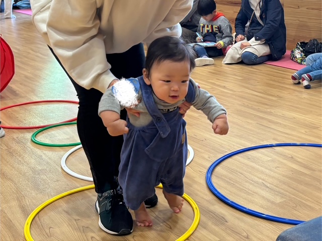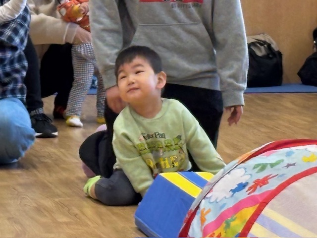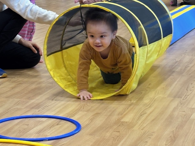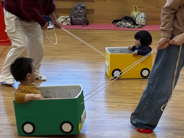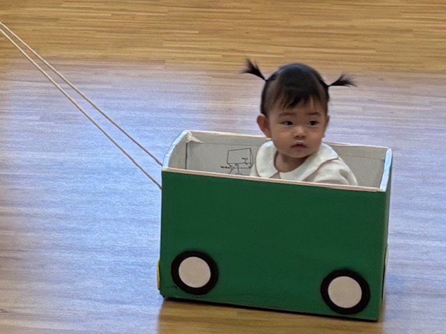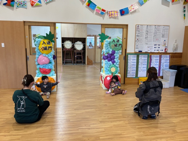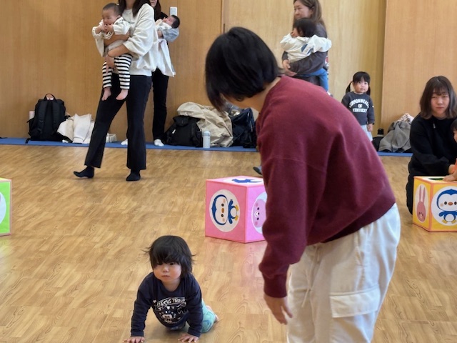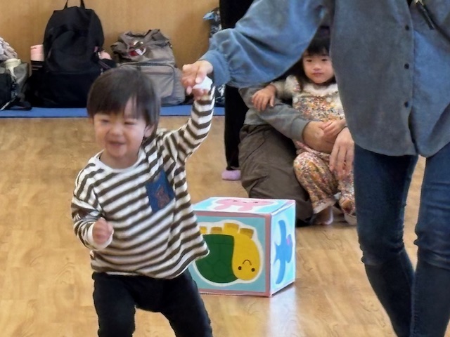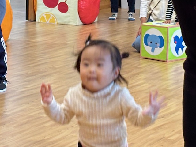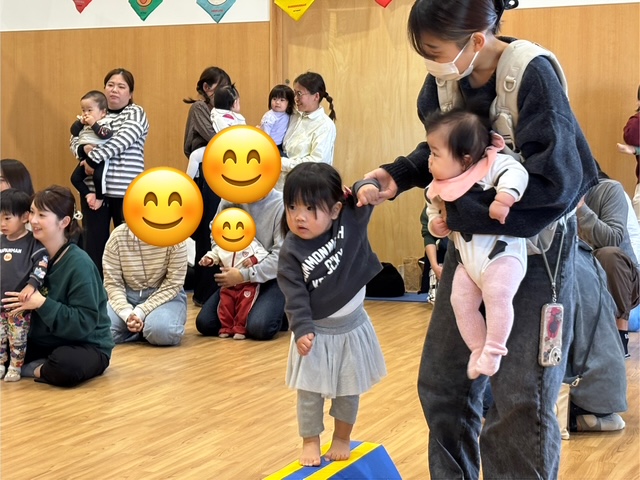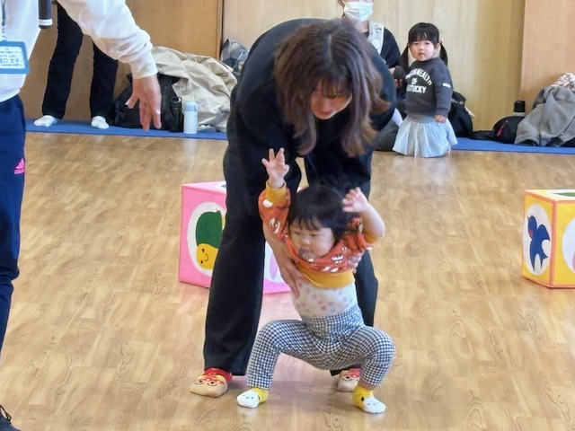 渡ってくぐってジャンプして、探検ごっこです。ママやパパと手をつないで元気にたんけんできたね!
