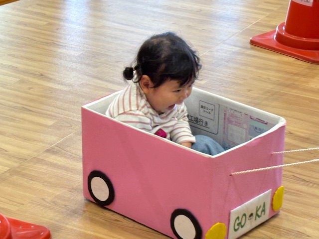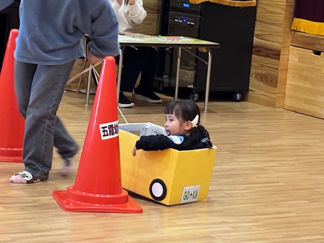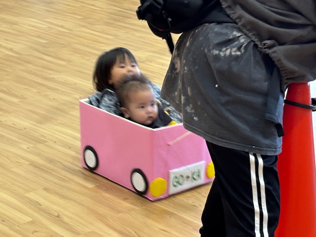 ちびっこカートに乗り込みママさんドライバーが運転!猛スピードの車があったり急ハンドルを切ったりドライブテクニックはいかがだったでしょう?お友だちは嬉しそう💓