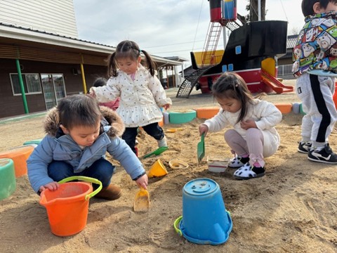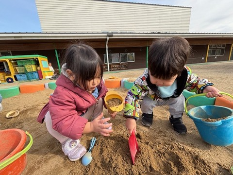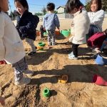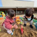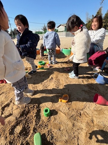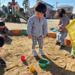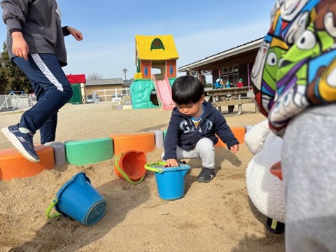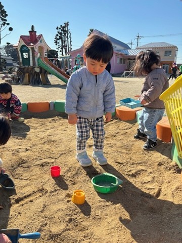 今回も天気が良かったので、外遊びに行きました。砂場や滑り台など、にこにこで遊んでいたお友だちでした。