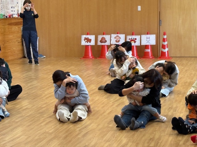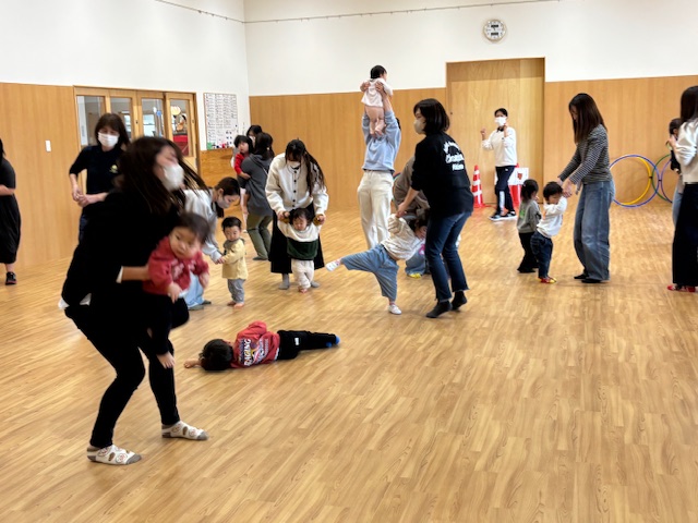 最後は、恒例「夢をかなえてドラえもん」の親子体操でお別れです。何度か踊ったことのあるお友だちは上手に踊れるようになっていてビックリ!親子で向かい合ってにこにこ嬉しそうでした😊