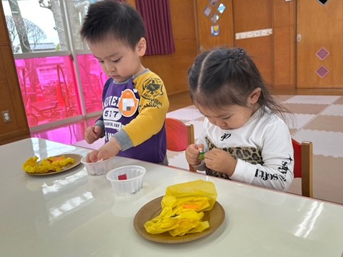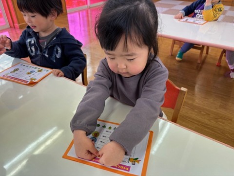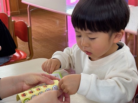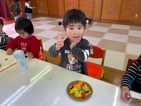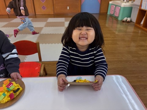 3月4日(水)・6日(金)に今年度最後のわくわくクラブがありました。最初は、お家の人と離れるのが淋しくて泣いていたお友だちも、今ではほとんど泣くことなく過ごしている姿が見られるようになりました。
