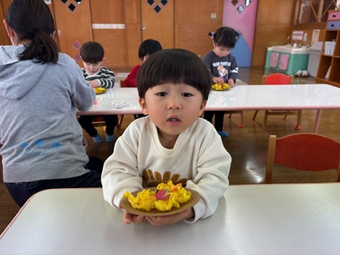 美味しそうなちらし寿司ですね!あっとういう間の1年間、たくさんのご理解とご協力をありがとうございました。みんなの成長が見られ、とても嬉しく思います。これからもお友だちの活躍を楽しみにしています!