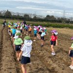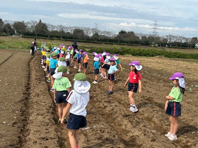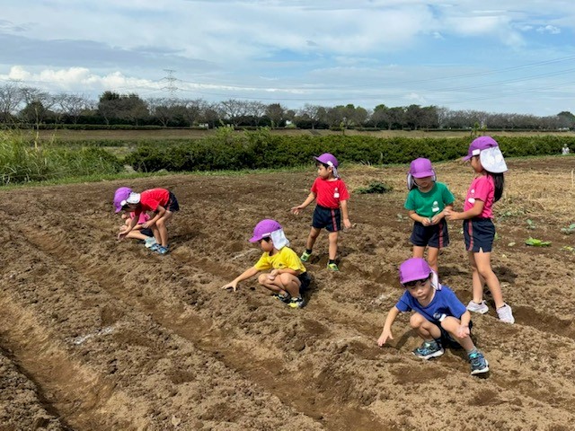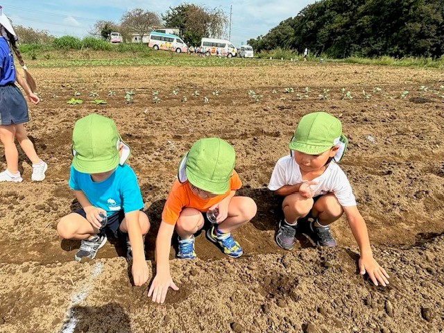 10月6日(月)に桜組のお友だちが、大根の種まきに行ってきました。天気が心配でしたが、雨に降られることなく無事に種まきをすることが出来ました!